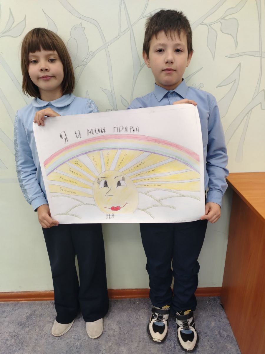 12 декабря в День Конституции классным руководителем 3 класса Мавриной Ю.В. был проведен классный час «День конституции России». Целью классного часа было: сформировать понятия «закон, порядок, право»; дать представление о Конституции; ознакомить учащихся с символикой: флагом, гербом, гимном; воспитывать гордость за свою страну, развивать чувство гражданственности и патриотизма, любовь к Родине, интерес к истории России. Учащиеся прослушали гимн, повторили государственную символику, на примере сказок разобрали правовые ситуации. В конце занятия нарисовали плакат «Я и мои права».