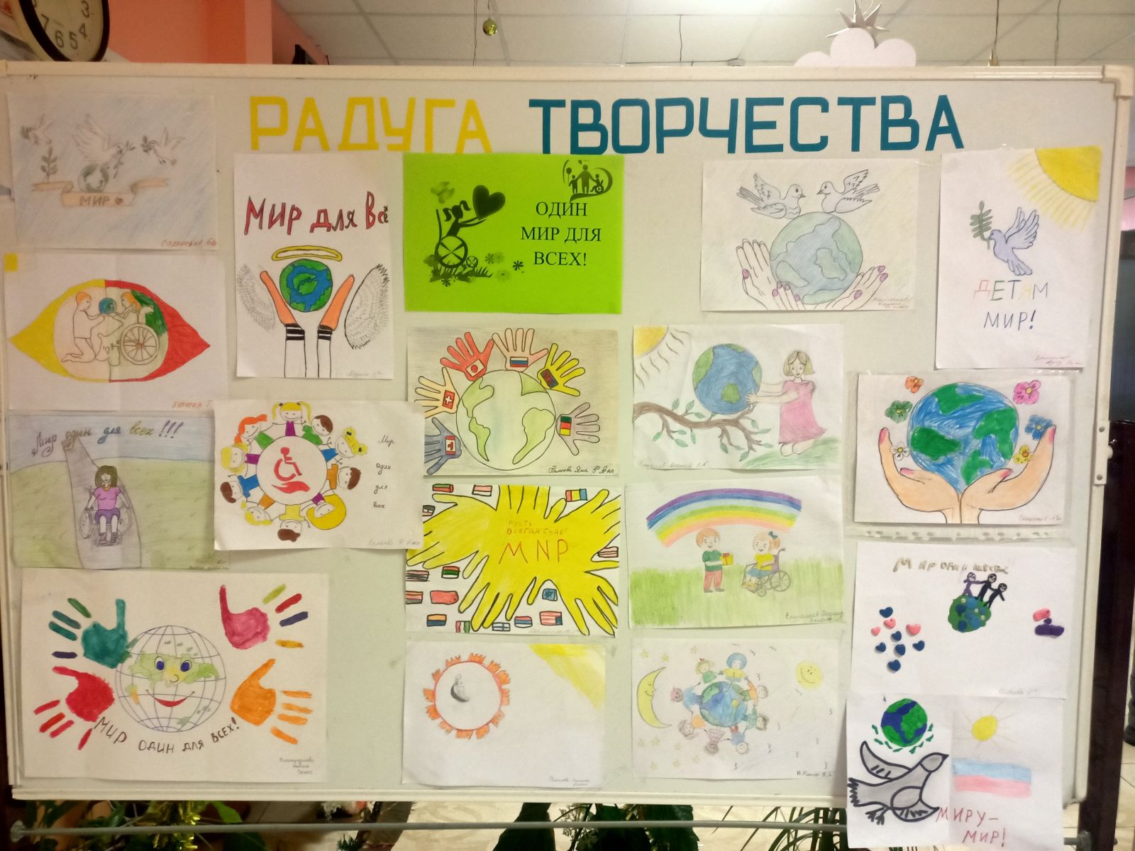 В рамках проведения Декады инвалидов в школе прошёл конкурс рисунков "Один мир для всех". Итоги ожидаются.