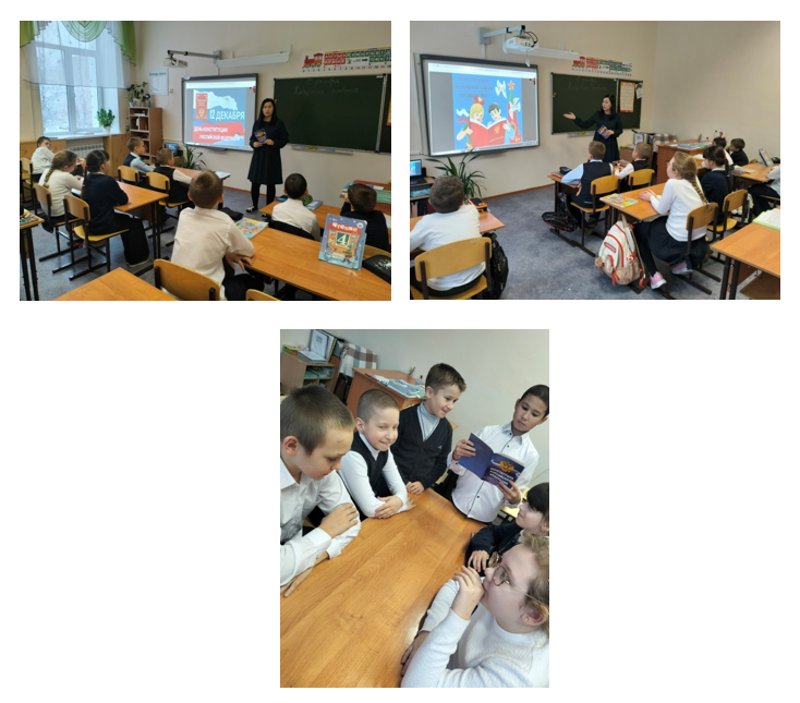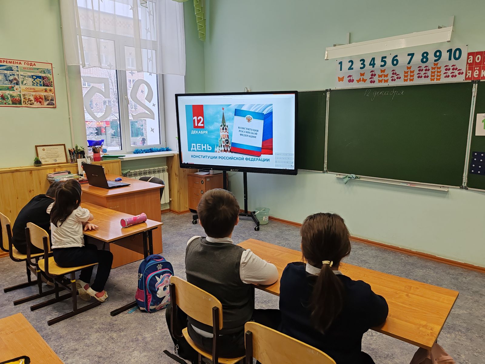 12 декабря учитель начальных классов Булычева М.Н. провела классный час, посвященный ко "Дню Конституции Российской Федерации" с учащимися 4 класса.