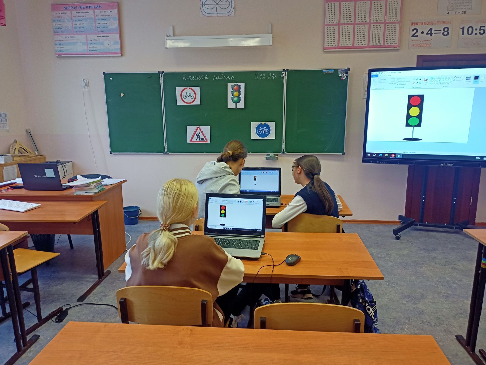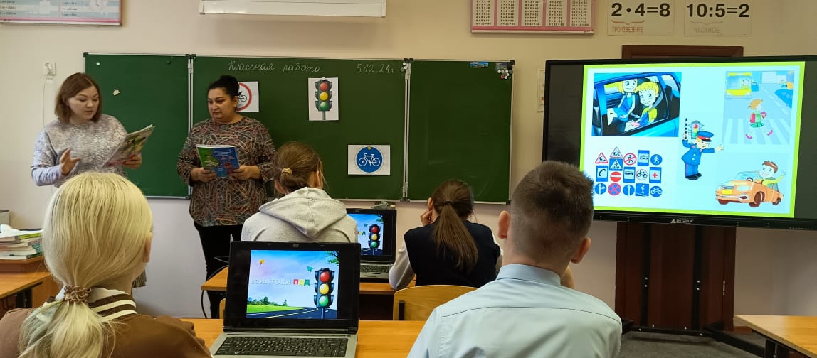 Ученики рассматривали и анализировали ситуации на дороге и отвечали на вопросы, называли дорожные знаки, отгадывали загадки. Заключающим заданием было нарисовать ответ на загадку на ноутбуках в программе Paint.