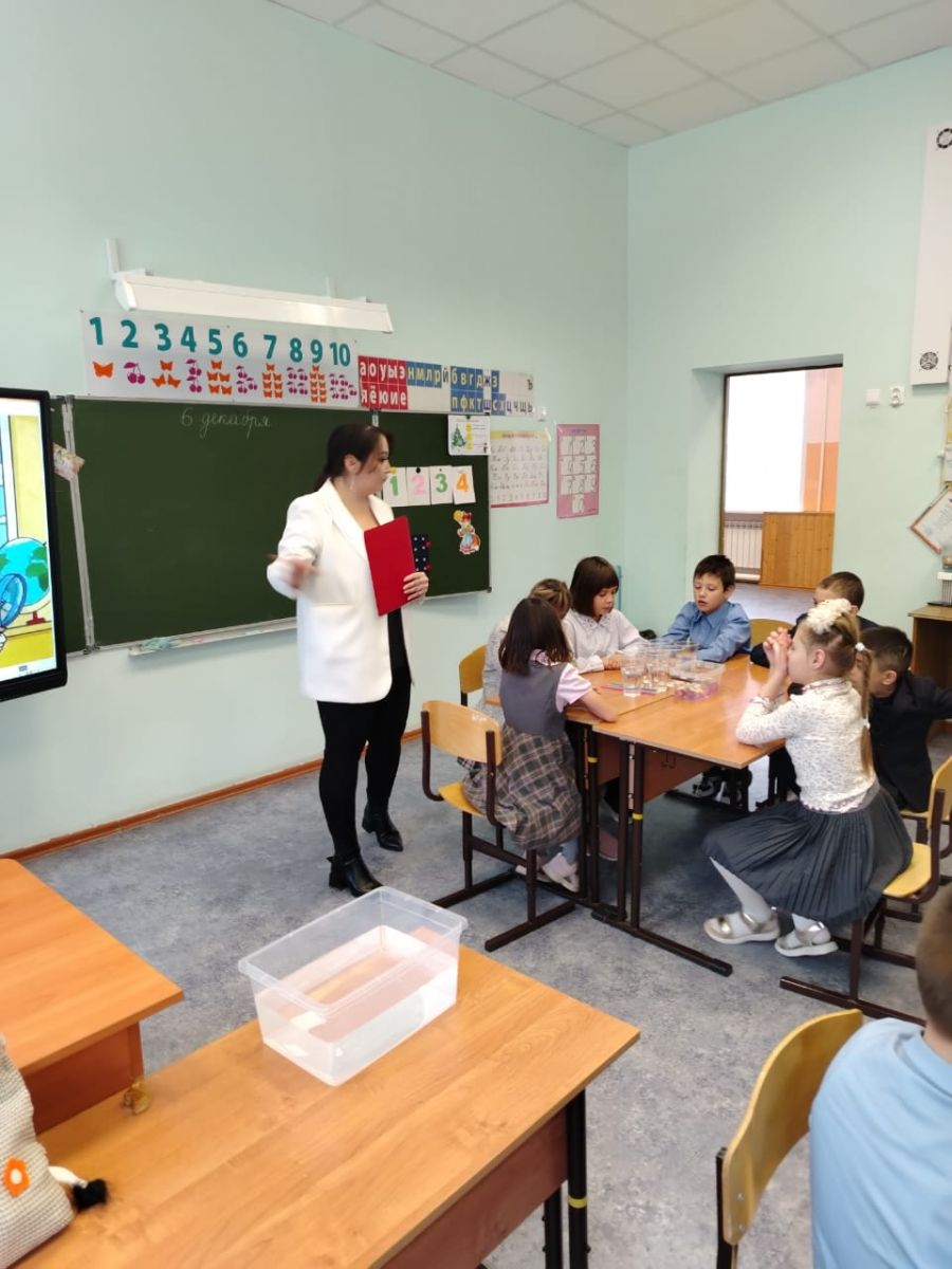 В рамках декады инвалидов учителя начальных классов Акимова С.В. и Шамсутдинова Н.Р. с учащимися 2 и 3 классов провели открытый урок по экспериментально-исследовательской деятельности «В гостях у профессора Почемучкина».