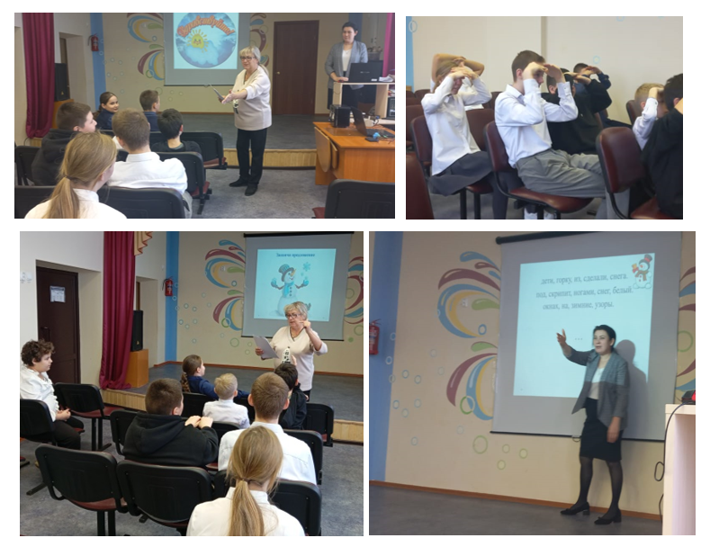 В рамках декады инвалидов учителя –логопеды школы Галяутдинова Г.Н., Фасхутдинова Г.А. провели занятие с 5-6 классом по теме: " Зимушка-зима". Целью занятия было уточнение и закрепление представлений о зиме и её приметах. На занятии учащиеся совершенствовали лексико-грамматический строй речи: учились употреблять существительные в единственном и множественном числе; совершенствовать навыки употребления предложно - падежных конструкций, закрепляли умение отвечать на вопросы полным предложением, составлять предложения, подбирать слова признаки и слова-действия, выполняли артикуляционную и дыхательную гимнастику.