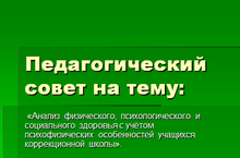 Педсовет: Анализ физического, психологического и социального здоровья с учетом психофизических особенностей учащихся коррекционной школы. 20.12.2013