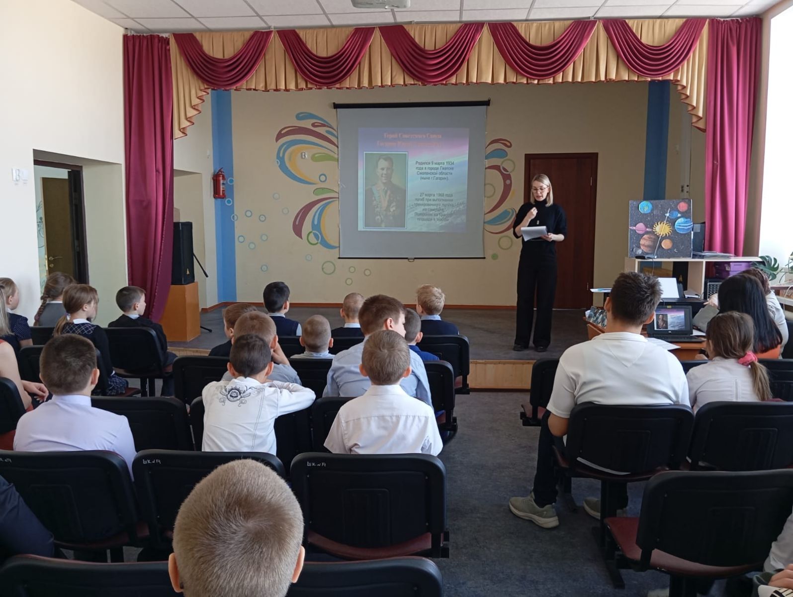 11 апреля библиотекарь Центральной городской детской библиотеки им. Ю. Гагарина Махмудова А.А., в рамках программы «Надежда», для учащихся нашей школы провела мероприятие «День космонавтики. Мы первые!», способствующие расширению и углублению представлений о первом в мире космонавте Ю.А. Гагарине. На мероприятии ребята узнали много интересного о биографии Ю. А. Гагарина, о первом космическом корабле (видео фрагмент), об одежде и питании космонавта. Благодаря материалам «Научно-исследовательского испытательного центра подготовки космонавтов имени Ю. А. Гагарина» и телестудии Роскосмоса, дети посмотрели фрагменты документальных фильмов «Юрий Гагарин. Подготовка к первому запуску» и «Когда вернется Гагарин» и узнали об особенностях подготовки и требованиях, предъявляемых космонавтам, перед полетом.