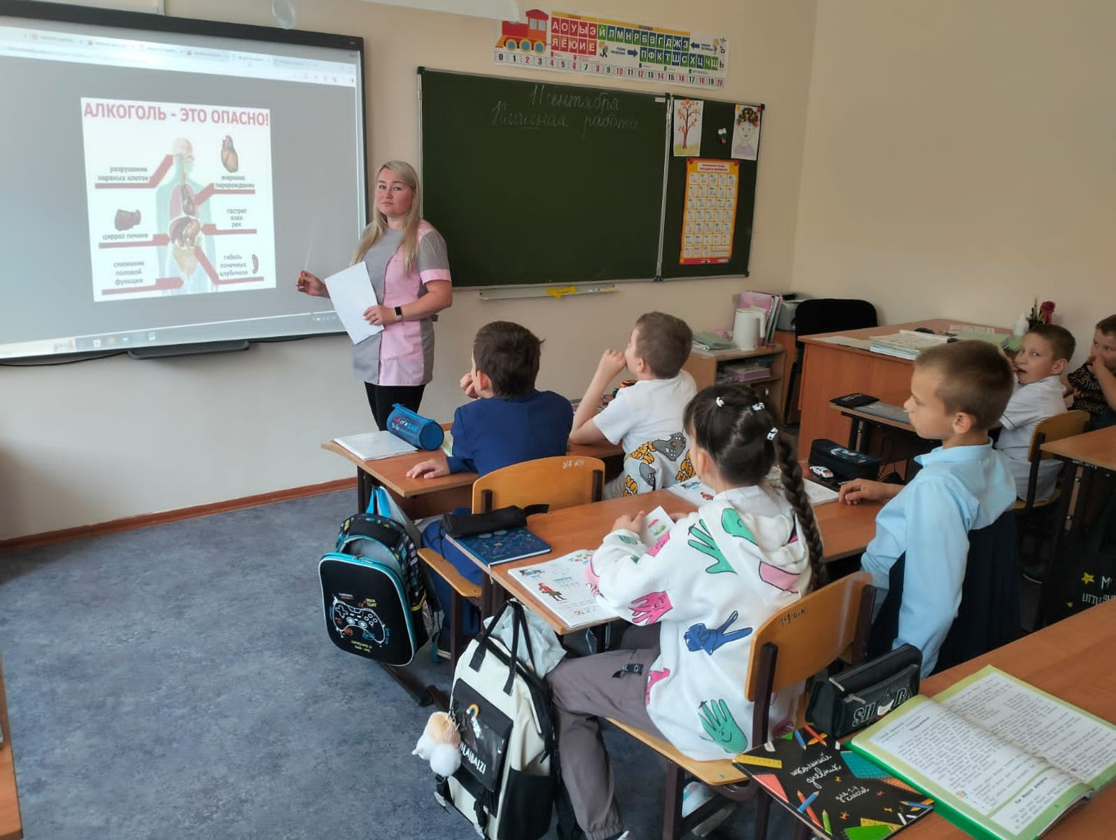 - беседа «Алкоголь употреблять – себя убивать» с участием медицинской сестры школы Кузьминой Н.Г.