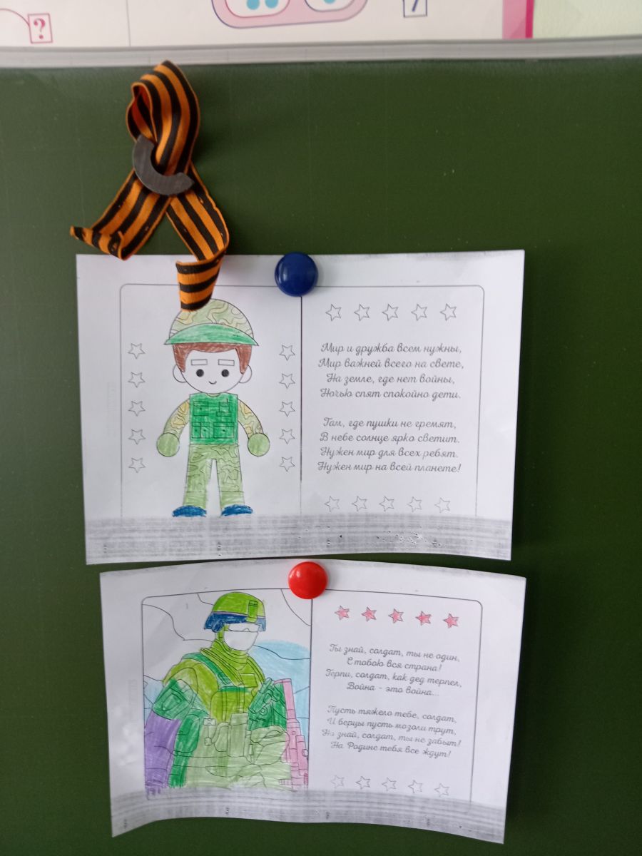 В преддверии Дня Защитника Отечества классным руководителем 2 класса Мавриной Ю.В. был проведен Урок Мужества. Цель занятия было: формирование представлений о мужестве, долге, чести, ответственности, нравственности, понимание того, что без патриотизма невозможно привести Россию к возрождению. Учащиеся прослушали стихотворение о мужестве и сформулировали тему урока. Назвали события страны, когда людям приходилось быть особенно мужественными. Вспомнили ВОВ, войны в Афганистане и Чечне, СВО на Украине. В конце урока написали письмо солдату и раскрасили рисунки на данную тему.