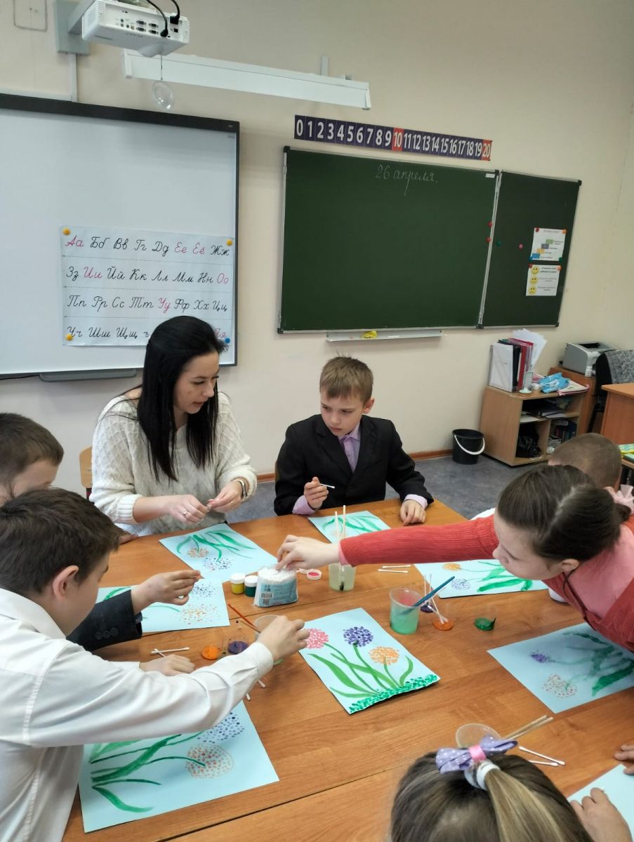26 апреля для учащихся 2, 3 класса учитель начальных классов Булычева М.Н. провела мастер-класс «Цветная акварель». В ходе занятия дети познакомились с одной из техник нетрадиционного рисования, которая открывает широкий простор для детской фантазии, дает ребенку возможность увлечься творчеством, развивать воображение, проявить самостоятельность и инициативу, выразить свою индивидуальность, стимулирует положительную мотивацию, снимает страх перед процессом рисования.