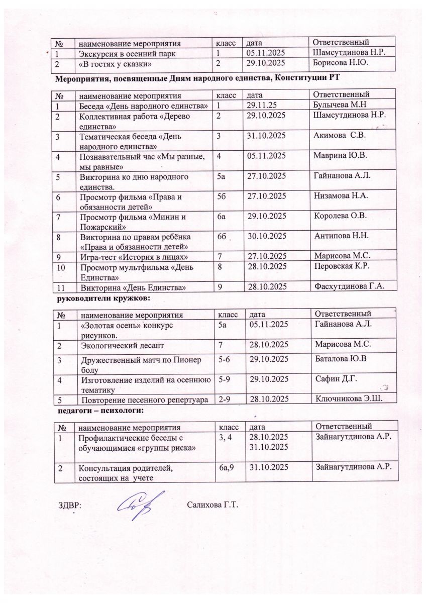 План мероприятий на осенних каникулах 2025-2026 уч.г.