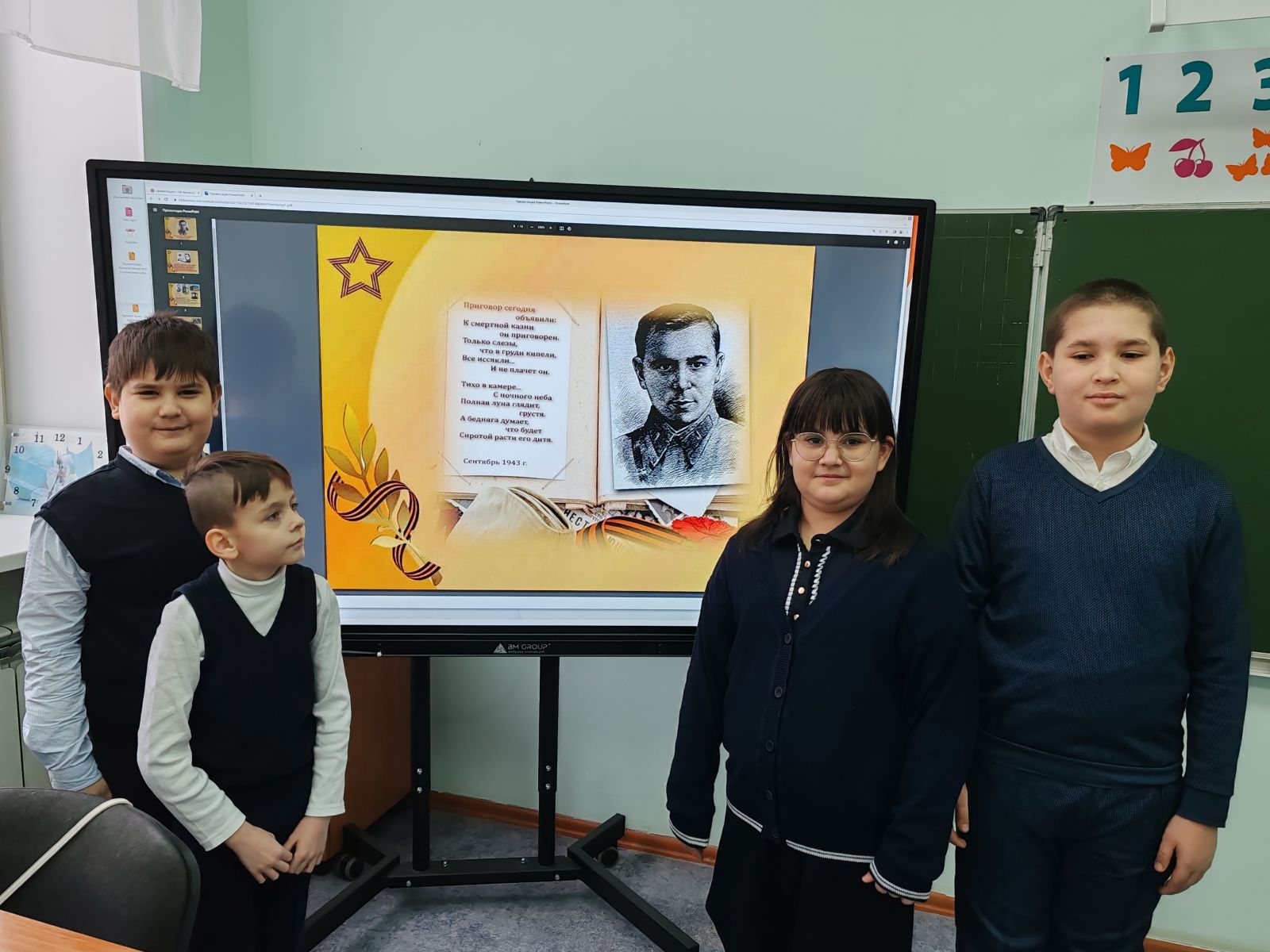 Под руководством Шамсутдинововй Н.Р. во 2 классе в преддверии 120-летия со Дня рождения Мусы Мустафовича Джалиля – татарского поэта, Героя Советского Союза, лауреата Ленинской премии, чьё имя стало символом мужества, верности Родине и силы поэтического слова, прошёл классный час «Мужество останется в веках».