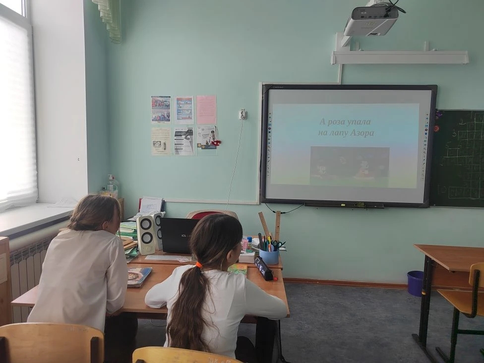 В преддверии дня поэзии в нашей школе советником директора по воспитанию Зубок Э.Ф. совместно с библиотекарем Шайхутдиновой Х.Ш. и активом школы был организован и проведен классный час «Поэтическое крылечко» для учащихся 6 «Б» класса с целью привить любовь к поэтическому искусству и расширить кругозор учащихся.