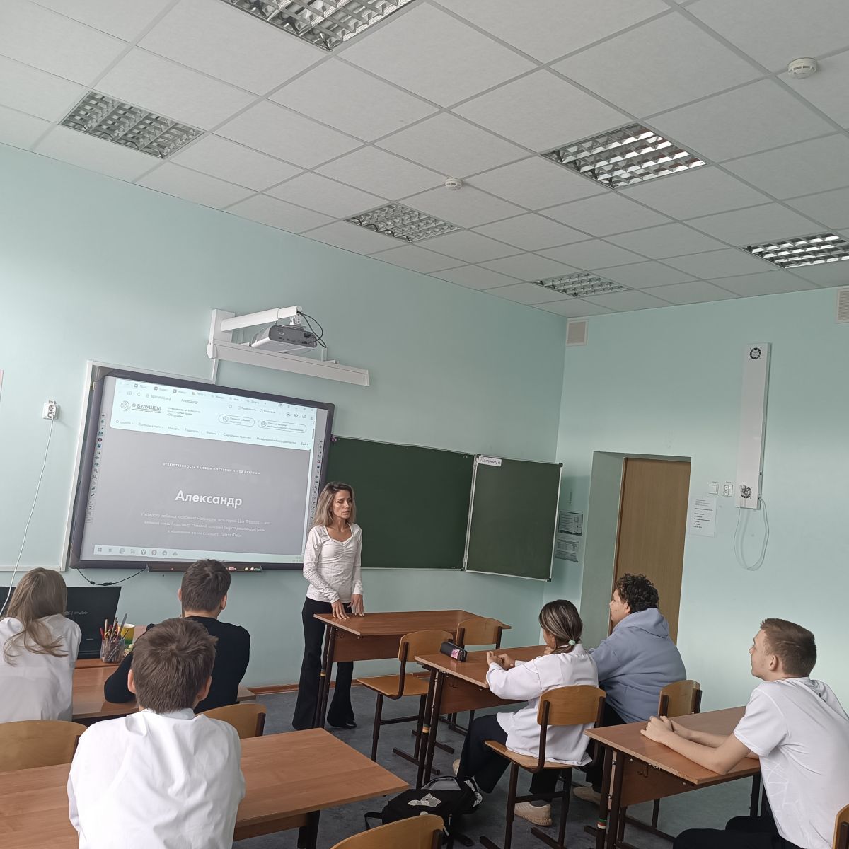 В рамках проекта «Киноуроки в школах», направленного на формирование созидательного мировоззрения школьников и побуждения к социально значимой деятельности на благо общества, в нашей школе для учащихся 8 и 9 классов советником директора по воспитанию Зубок Э.Ф. был организован просмотр короткометражного фильма «Александр» режиссера Елены Дубровской.