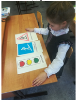 Закрепляя знаки дорожного движения, учащимся предстояло задание на внимание, собрать дорожные знаки из множества кусочков и с этим заданием они справились. А ещё ребята разыграли дорожную ситуацию, как правильно объезжать препятствия на дороге. Также дети закрепили знаки сигнала светофора и правила перехода через проезжую часть в игровой форме. Далее ребят ждало не менее увлекательное задание. Разгадывание загадок. Ученики и с этим заданием справились с лёгкостью. Затем ученики называли дорожные знаки и вспомнили, где эти знаки находятся у нас в городе. В конце викторины мы с ребятами сделали вывод, что важно соблюдать правила дорожного движения, потому что эти правила сохранят нам жизнь и ребята были награждены медалями.