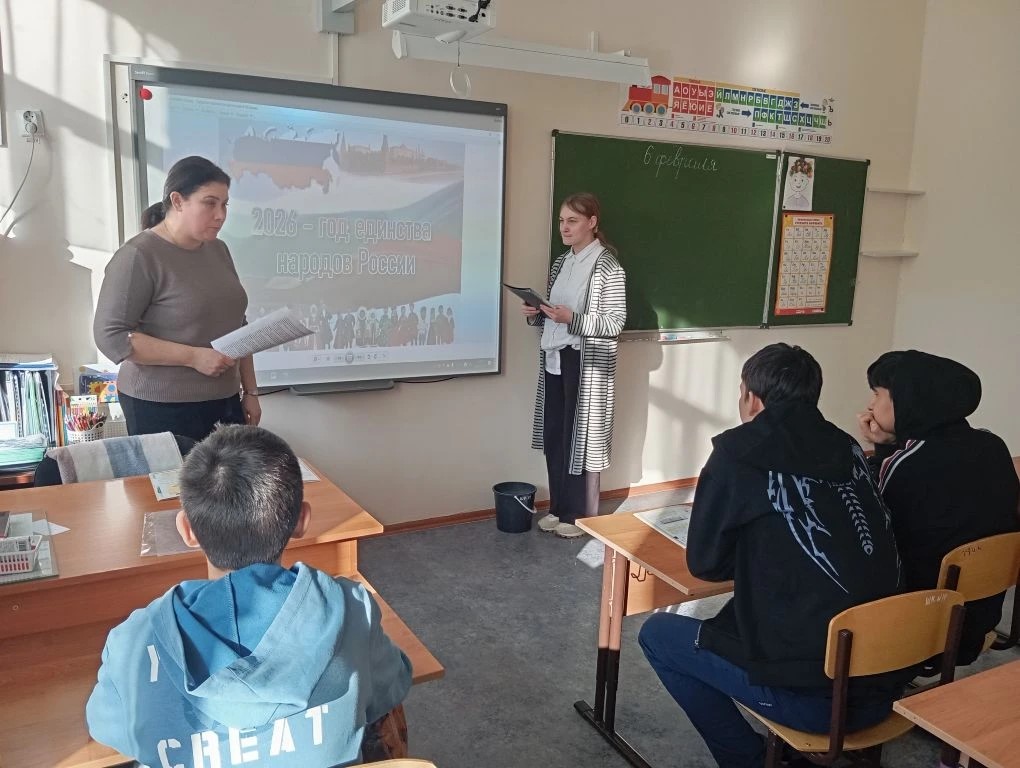 6 февраля 2026г. в 9 классе был проведен классный час "Мы вместе", посвященный теме укрепления дружеских связей и взаимопонимания между различными этносами, живущими на территории нашего многонационального государства. Цель классного часа: Формирование у учащихся гражданской позиции. Закрепление у обучающихся знаний о многообразии и богатстве историко-культурного наследия России.