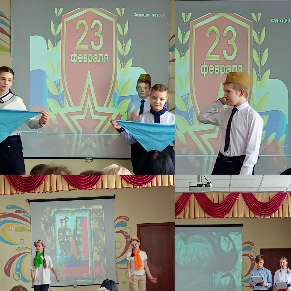 Праздник 23 февраля в школе – хороший повод для воспитания у обучающихся чувства патриотизма, сопричастности к лучшим традициям своей Родины, формирования у ребят гордости за славных защитников Отечества. Это праздник всех людей, которые стоят на страже нашей Родины. Это праздник настоящих мужчин — смелых и отважных, ловких и надёжных, а также праздник мальчиков, которые вырастут и станут защитниками Отечества. День Защитника Отечества в нашей школе, по многолетней традиции, отмечается концертом, подготовленные силами учеников и учителей нашей школы (Гайнановой А. Л.). Зрители получили массу положительных эмоций.