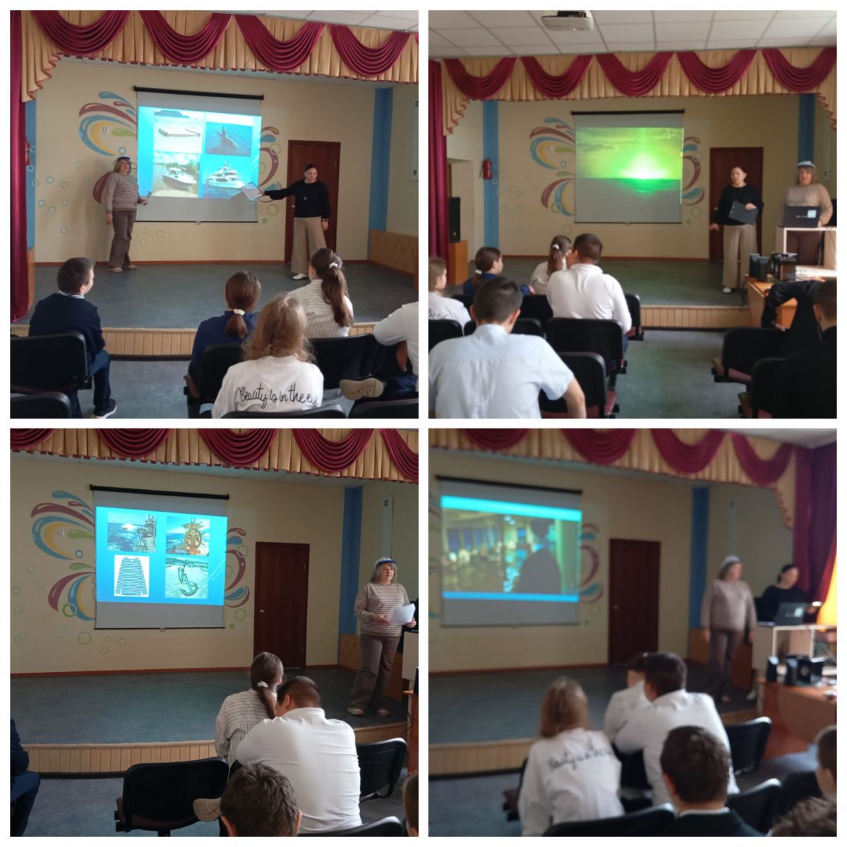 25 сентября в России отмечается Всемирный день моря. Учителя Перовская К.Р. и Шилкина А.В. провели познавательное мероприятие для учащихся 6-9 классов - «По морям и океанам», которое помогло расширить кругозор об увлекательном подводном мире.