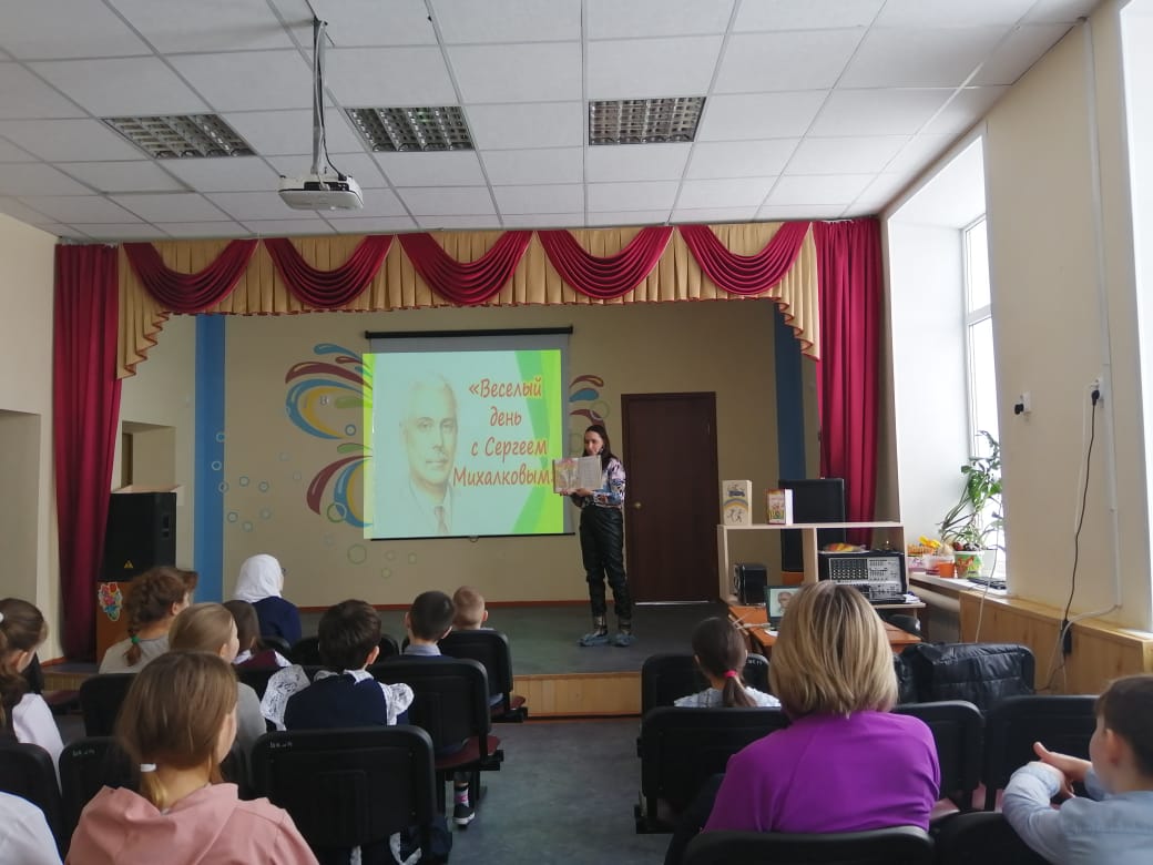 Началось мероприятие с доброжелательного приветствия, пожеланий друг другу хорошего дня и настроения. Сначала ребята познакомились с биографией советского и российского писателя, поэта, драматурга, военного корреспондента, сценариста, баснописца, общественного деятеля. Сергей Михалков — человек-эпоха, человек-легенда, автор гимна России. Он родился в 1913 году и прожил долгую счастливую жизнь. Судьба отмерила ему 96 лет, ярких, красивых, творческих.