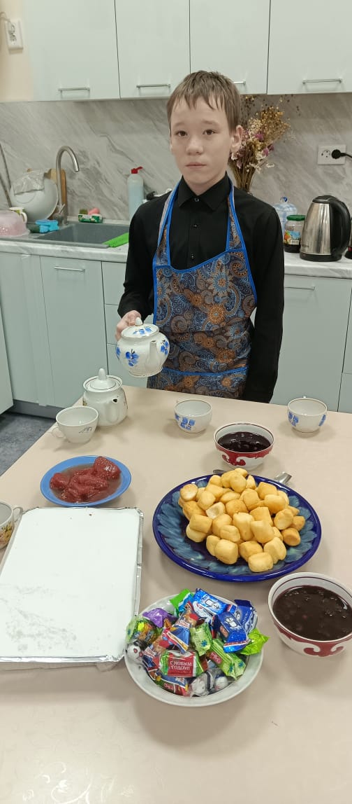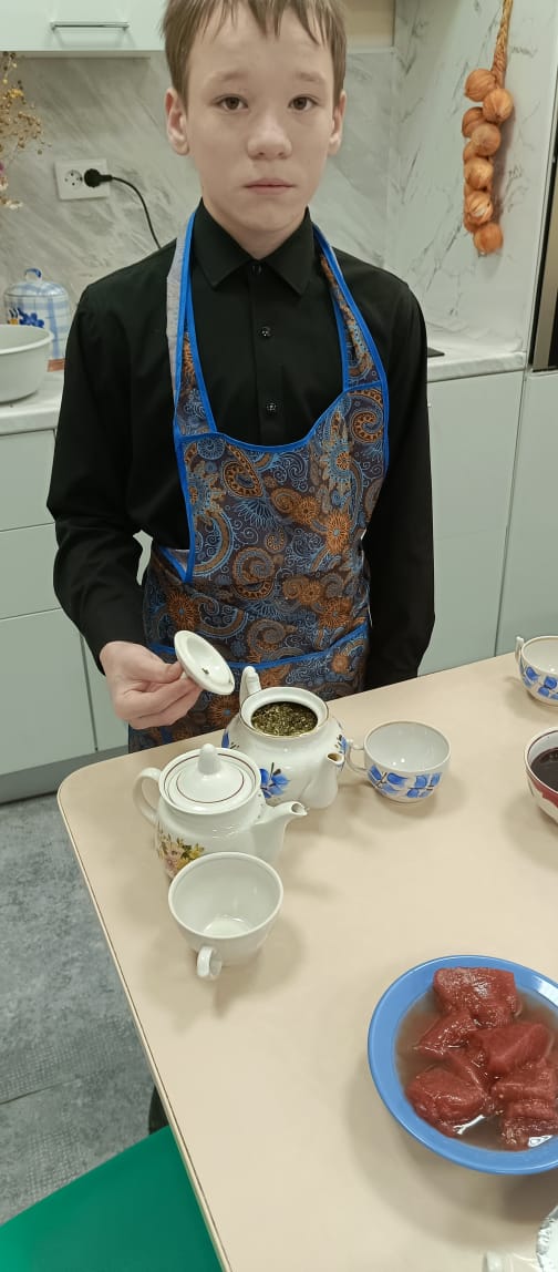 Сегодня мы с учащимися 8–9 класса познакомились с одним из видов праздничной сервировки, с искусством (праздничного) чайного стола или чайным банкетом. В наш быт все чаще входит приглашение на чашку чая, а не на огромный пир, как это было раньше. Поэтому и цель нашего открытого урока заключалось в получении знаний о чае, его родине, сортах и видах чая, традициях чаепития разных стран. А также мы обговорили, как принять гостей дома, накрыть стол и чем их угостить. Человек вообще чувствует себя хорошо, когда светит солнце, когда его любят, когда рядом есть друзья, с кем можно поделиться радостью, горем, поговорить о том, о сём.