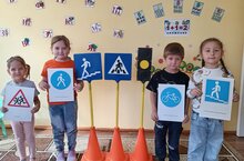 В группе оформлен уголок «Дорожное движение», организованна выставка книг и иллюстраций по ПДД, изготовлены настольно –печатные игры «Собери светофор», «Составь дорожный знак», оформлена картотека стихов – загадок «Дорожные знаки», картотека сказок по ПДД.