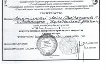 Наша воспитанница Ахметзянова Лейля приняла участие в Республиканском фестивале искусств ремесел и декаративно-прикладного творчества "Алтын куллар" 05.05.2015