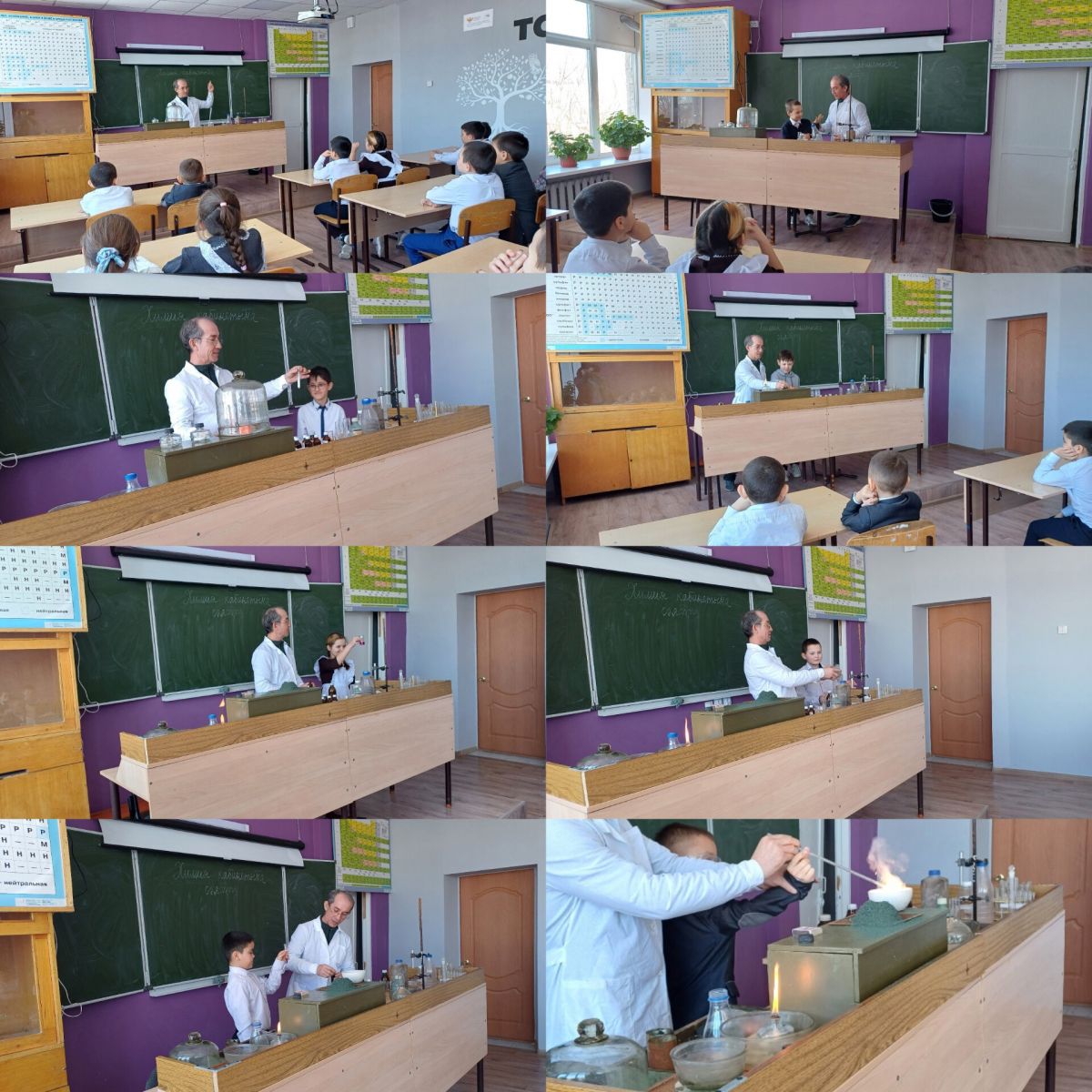Химия атналыгы кысаларында башлангыч класс укучылары химия кабинетына сәяхәт ясадылар. Химия укытучысы Сабирҗанов А.Ә. кабинетта кулланыла торган җиһазлар белән таныштырды, кызыклы тәҗрибәләр күрсәтте.