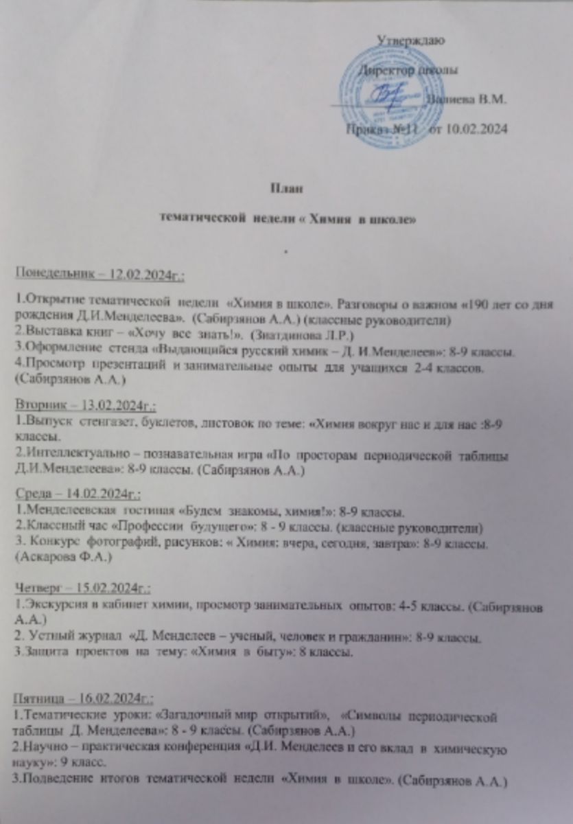 В рамках недели химии учитель химии Сабирзянов А.А. оформил стенд "Выдающийся русский химик -Д.И. Менделеев"