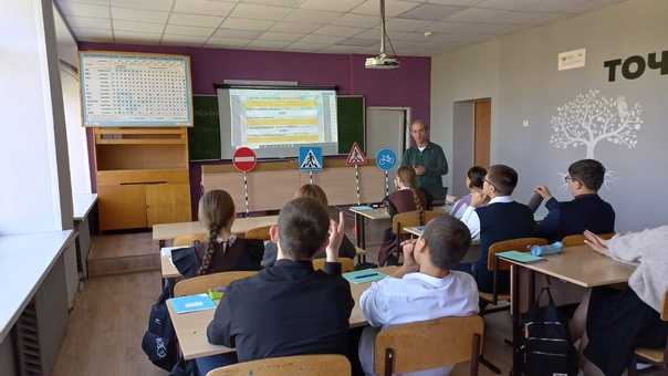 В рамках единого дня безопасности дорожного движения 20 сентября учитель ОБЖ Сабирзянов А.А. организовал и провёл урок по теме «Законы улиц и дорог». Перед уроком были поставлены следующие цели: -проверить и закрепить знания ПДД на улицах и дорогах; - правила пользования общественным транспортом; - воспитывать у обучающихся культуру поведения на дорогах и транспорте. Учитель при помощи презентации рассказал о ПДД для пешехода, пассажира и водителя транспортного средства. Используя загадки, стихотворения о правилах дорожного движения и дорожных знаках вспомнили и закрепили знания по правилам дорожного движения. Мероприятие было полезным, обучающимся очень понравилось.