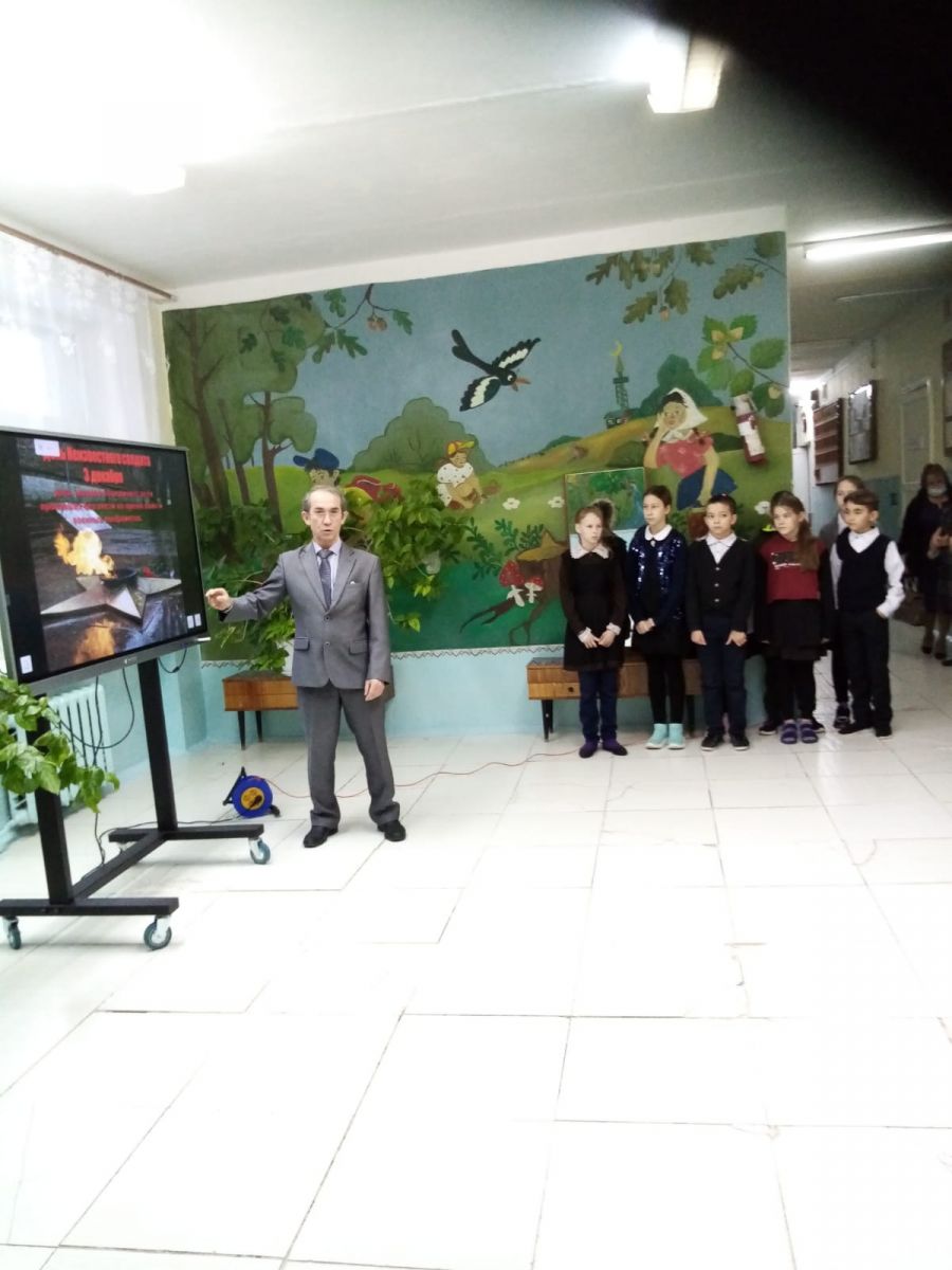 Сегодня в школе прошло мероприятие посвященное дню неизвестного солдата. Учитель ОБЖ Сабирзянов А.А. рассказал историю происхождения этого дня и показал фильм об открытии мемориала. Мемориальный архитектурный ансамбль, расположенный у Кремлёвской стены в Александровском саду. Сооружён в 1967 году по проекту архитекторов Дмитрия Бурдина, Владимира Климова, Юрия Рабаева и скульптора Николая Томского. С 1997 года у Могилы Неизвестного Солдата располагается Пост № 1. Монументу присвоен статус объекта культурного наследия России, а также Общенационального мемориала воинской славы.