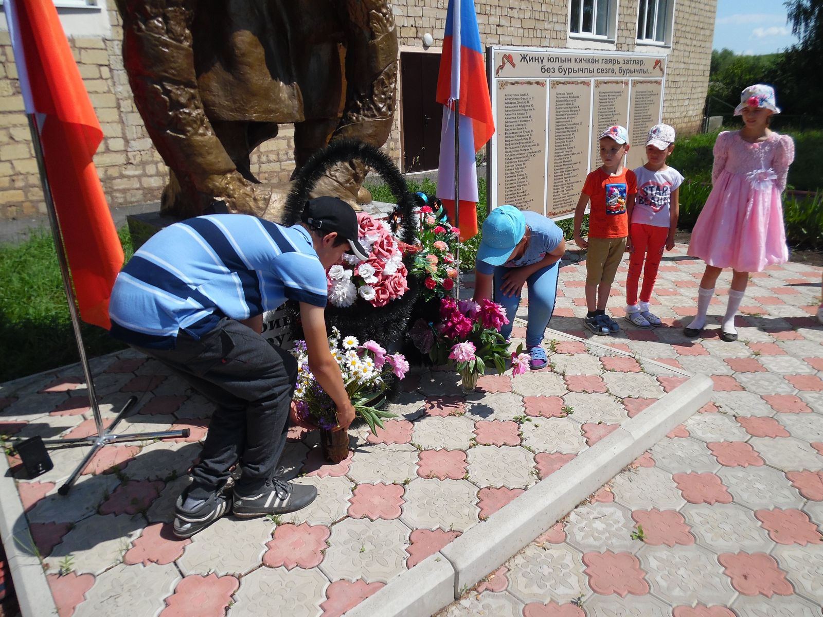 Сельский библиотекарь Мифтахова Г. Ф. организовала для ребят литературно-музыкальную композицию «Долгие вёрсты войны». Дети были взволнованны, на них произвели большое впечатление рассказы о первом дне войны, о страшных бомбёжках и других ужасах войны.