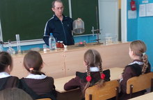 В рамках недели биологии и химии, учитель химии Сабирзянов А.А. провел "Экскурсию в кабинет химии" для учащихся 4,5 классов. Во время мероприятия он рассказал учащимся что изучает химия, ознакомил учащихся правилами поведения в кабинете химии и показал интересные и занимательные химические опыты.