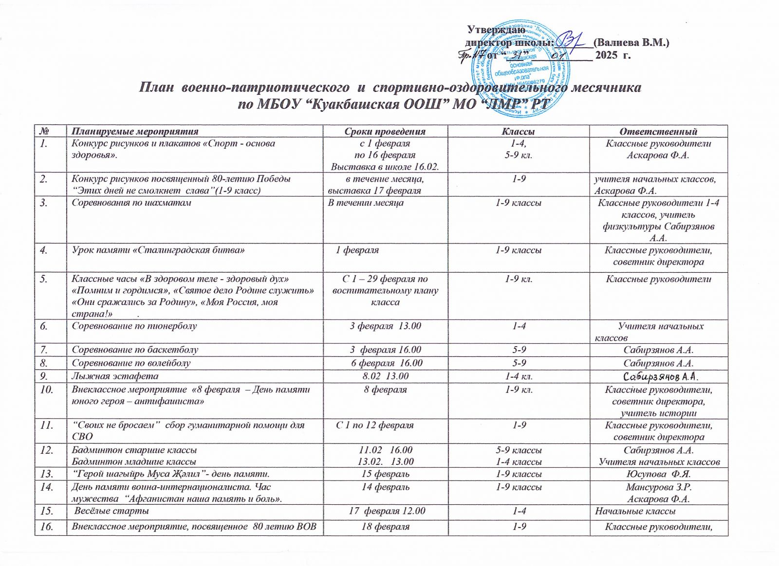 План военно-патриотического и спортивно-оздоровительного месячника 01.02.2025