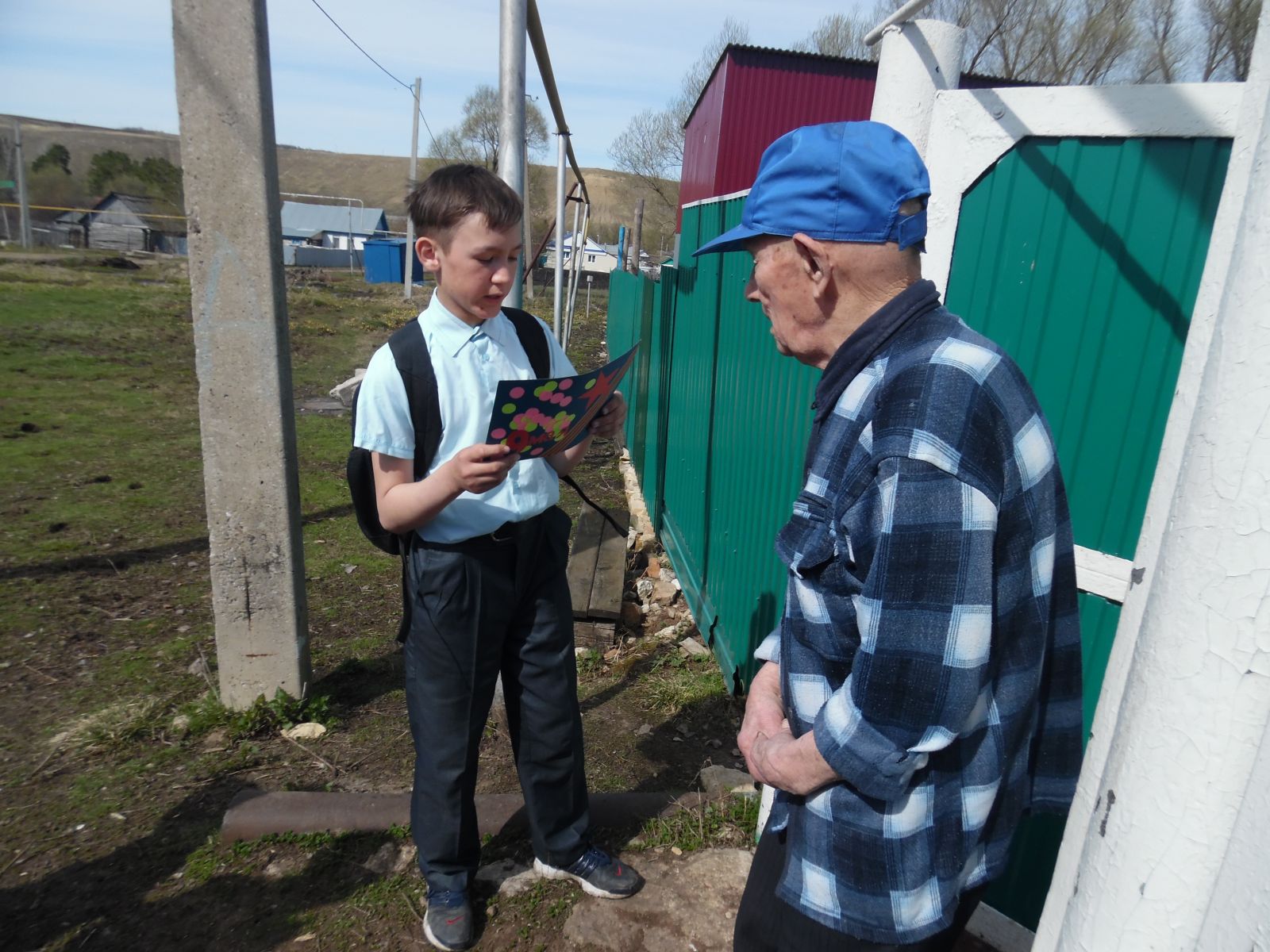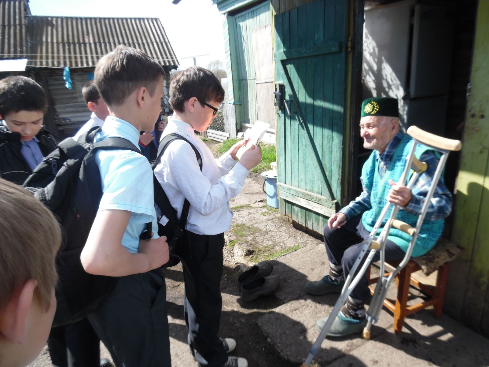 Бүген мәктәбебез укучылары сугыш һәм тыл ветераннарын, балачагын сугыш урлаган авылдашларыбызны Бөек Җиңү бәйрәме белән котлап, иртәгә уздырылачак тантанага чакырып йөрделәр.