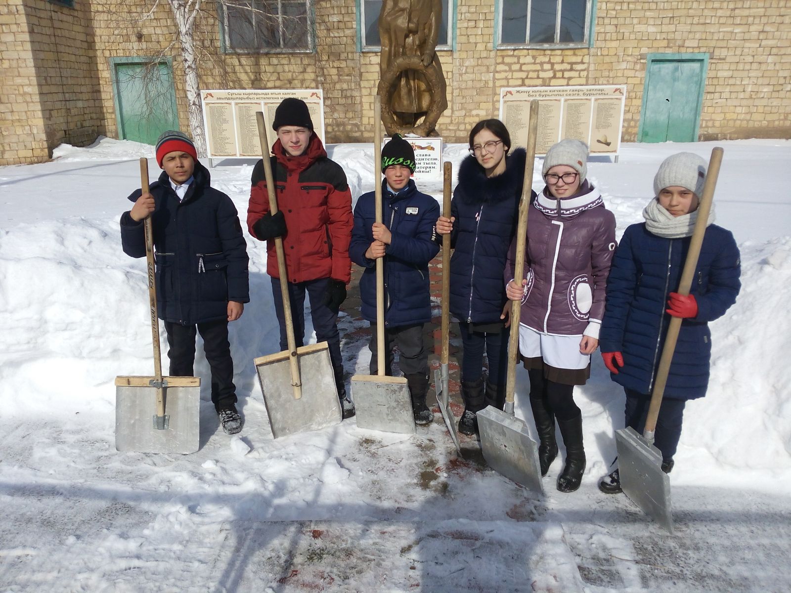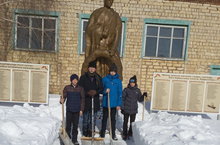 Сегодня учащиеся нашей школы, в рамках мероприятий "Весенняя неделя добра" убрали снег возле памятника павшим воинам села.