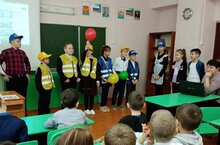 Руководитель отряда ЮИД Каримова Л.Н. провела интерактивную игру «С детства знать положено правила дорожные» с учащимися начальных классов. Ребятам напомнили о необходимости пристёгиваться в автомобиле, переходить улицу только в установленных местах, в темное время суток иметь на одежде светоотражающие элементы.