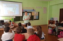 Затем Эльвира Сергеевна наглядно разобрала с детьми реальные примеры происшествий летом прошлого года на территории нашего города и района. К сожалению, нарушают сегодня правила и дети, и молодые люди, и пожилые участники дорожного движения, что часто приводит к трагическим последствиям. Наши ребята проанализировали все просмотренные эпизоды, правильно отвечали на поставленные вопросы специалиста. А в завершение встречи получили от неё в памятки на тему «Стань заметней на дороге». -