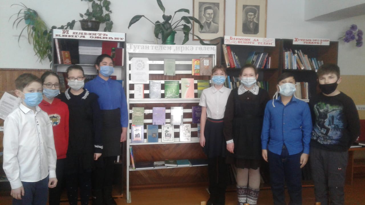 В рамках месячника родных языков учащиеся 5 го класса побывали сегодня в сельской библиотеке.Вместе с библиотекарем Шакировой С.А. приняли участие в конкурсе на лучшего знатока татарских пословиц,отгадывали загадки и отвечали на каверзные вопросы по грамматике родного и русского языков.Также был проведён обзор книжных новинок.Ребята читали свои любимые стихи на родном и русском языках.Мероприятие завершилось исполнением песни "И туган тел".Думаем,что такие мероприятия способствуют привитию любви и интереса к изучению языков. -