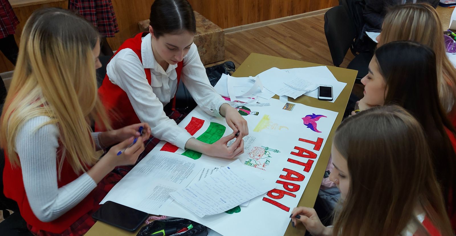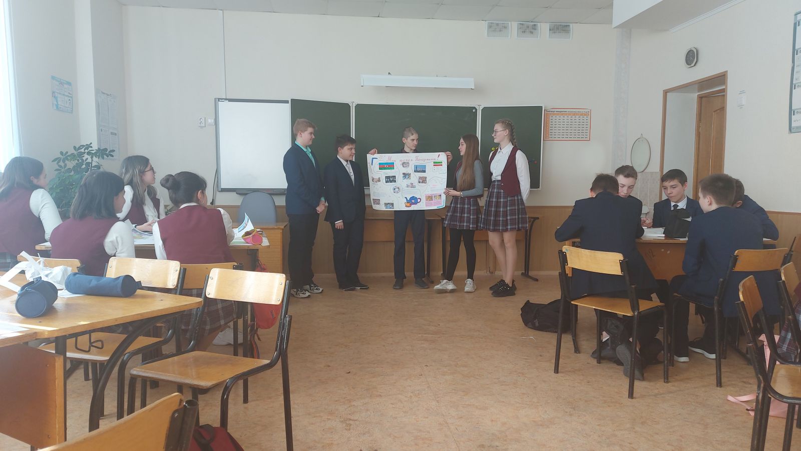 Туган телләр һәм Халыклар бердәмлеге елы кысаларында 7 нче сыйныфта (сыйныф җитәкчесе – Соловьева О.И.) «Безнең Татарстан» темасы буенча төркем проектларын яклау үтте. Әлеге чараның максаты - Татарстан халыкларының тарихи һәм мәдәни мирасын өйрәнү аша актив гражданлык позициясен формалаштыру. Укучылар яраткан республикабызның милли кухнясы, истәлекле урыннары, халыклары, мәдәнияты турында мәгълүмат әзерләделәр. Нәтиҗә ясап, балалар плакатлар рәвешендә проект эшләрен тәкъдим иттеләр һәм күпмилләтле республикабыз турында мавыктыргыч итеп сөйләделәр. Укучылар проект эшләренә куйган максат һәм бурычларга ирештеләр.