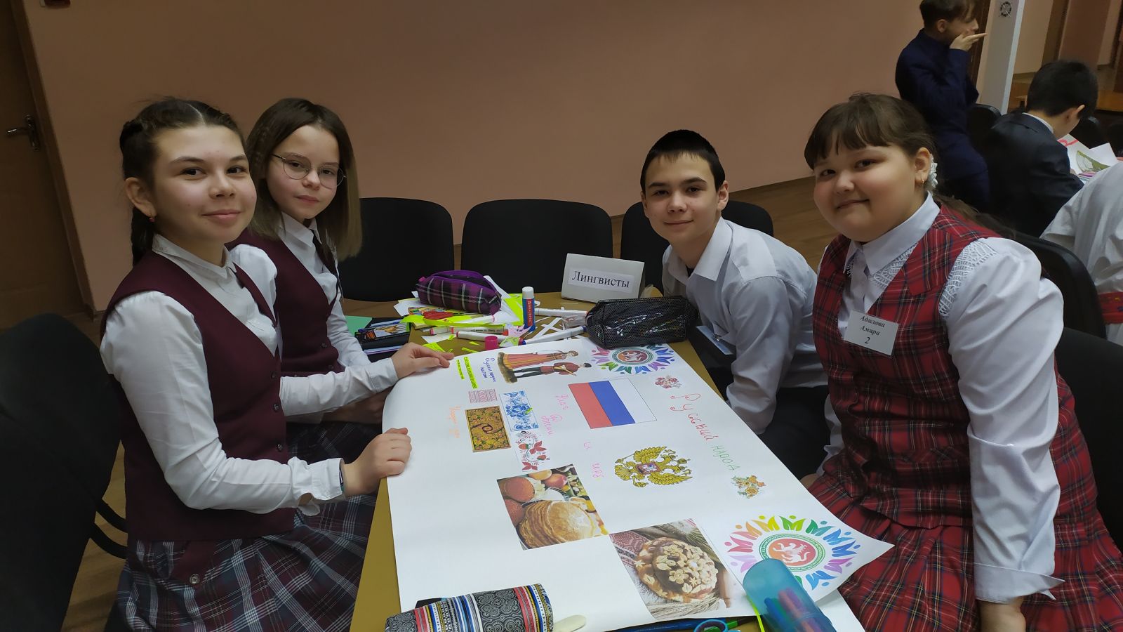 Туган телләр һәм халыклар бердәмлеге елы кысаларында, 7 нче сыйныфта (сыйныф җитәкчесе – Родионова Е.В.) «Күпмилләтле Татарстан» темасы буенча төркем проектларын яклау үтте. Әлеге чараның максаты - Татарстан Республикасы халыкларының тарихи һәм рухи традицияләрен, мәдәниятләрен һәм телләрен өйрәнү процессында укучыларны мәдәни яктан үстерү. Төркемнәрдә укучылар безнең республика халыклары турында проектлар әзерләделәр, әлеге проектларда татар, чуваш һәм мордваларның милли костюмнары, милли ашамлыклары, мәдәнияты, гореф-гадәтләре чагылыш тапты.