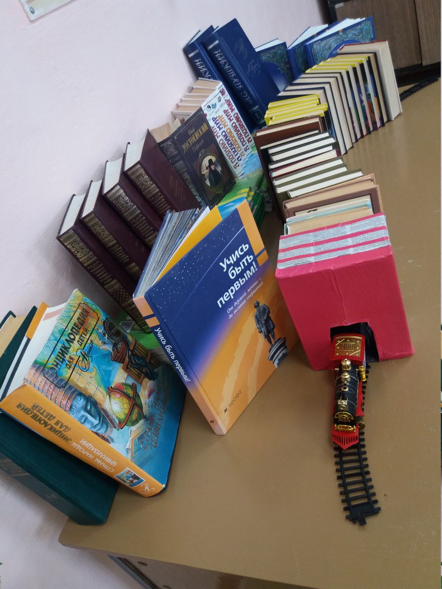 Педагогом-библиотекарем Мельниковой Л.Г. в рамках муниципального конкурса книжных инсталляций подготовлено и представлено в библиотеке две работы: «С книгой по жизни» и «Книжный ветер». Инсталляции вызывают живой и непосредственный интерес у читателей.