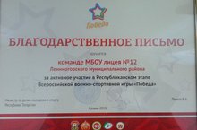 Поздравляем юнармейцев лицея принявших активное участие в республиканском этапе военно-спортивной игры «ПОБЕДА».