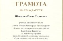 На основании приказа МО и Н РТ от 28.11.2017 № под 1909/17 «О проведении заключительного этапа республиканских олимпиад школьников по английскому языку «Путь к Олимпу» среди обучающихся 6-11-х классов общеобразовательных организаций в Республике Татарстан в 2017/2018 учебном году» от нашего лицея приняли участие 3 учеников. Призером данного этапа олимпиады стала ученица 8 класса Карпухина Е. Поздравляем ученицу и ее учителя Шашкову Е.С. с полученным результатом. Карпухиной Е. предстоит участвовать в следующем этапе Всероссийской олимпиады школьников, в связи с чем желаем ей дальнейших успехов и достижения высоких результатов.