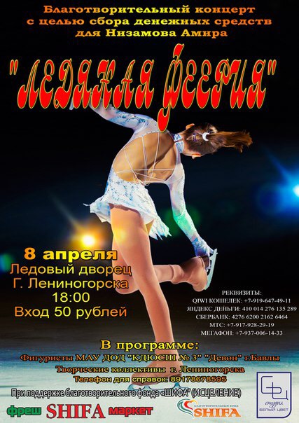 Благотворительный концерт 8 апреля в Ледовом Дворце. Начало в 18.00. Цена: 50руб.