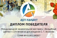 В этом году отмечается 225 лет со дня рождения русского писателя Сергея Тимофеевича Аксакова. Ученик 4 класса Гадиев К. принял участие в Международной викторине, посвященной творчеству писателя «Волшебный цветок». Поздравляем с победой!