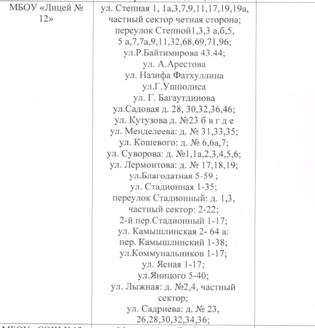 Уважаемые родители будущих первоклассников, публикуем закрепленные территории МБОУ лицей №12