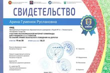 Прошла онлайн олимпиада на знание правил безопасного поведения на дороге «Сакла». Учащиеся отряда ЮИД Арина и Семен (руководитель Ахсанова А.А.) приняли участие в интернет олимпиаде. Ребята показали хорошие знания о правилах дорожного движения.
