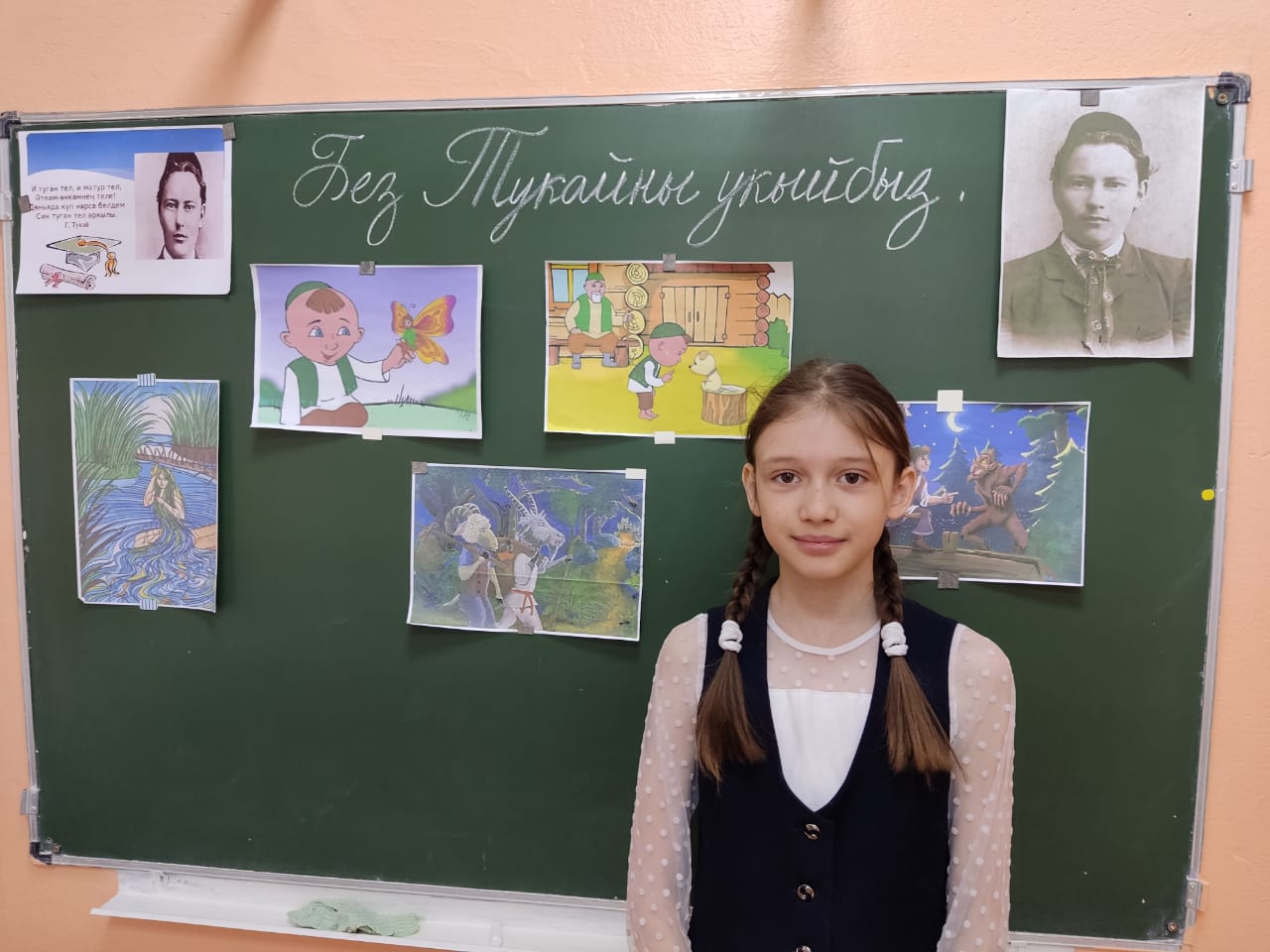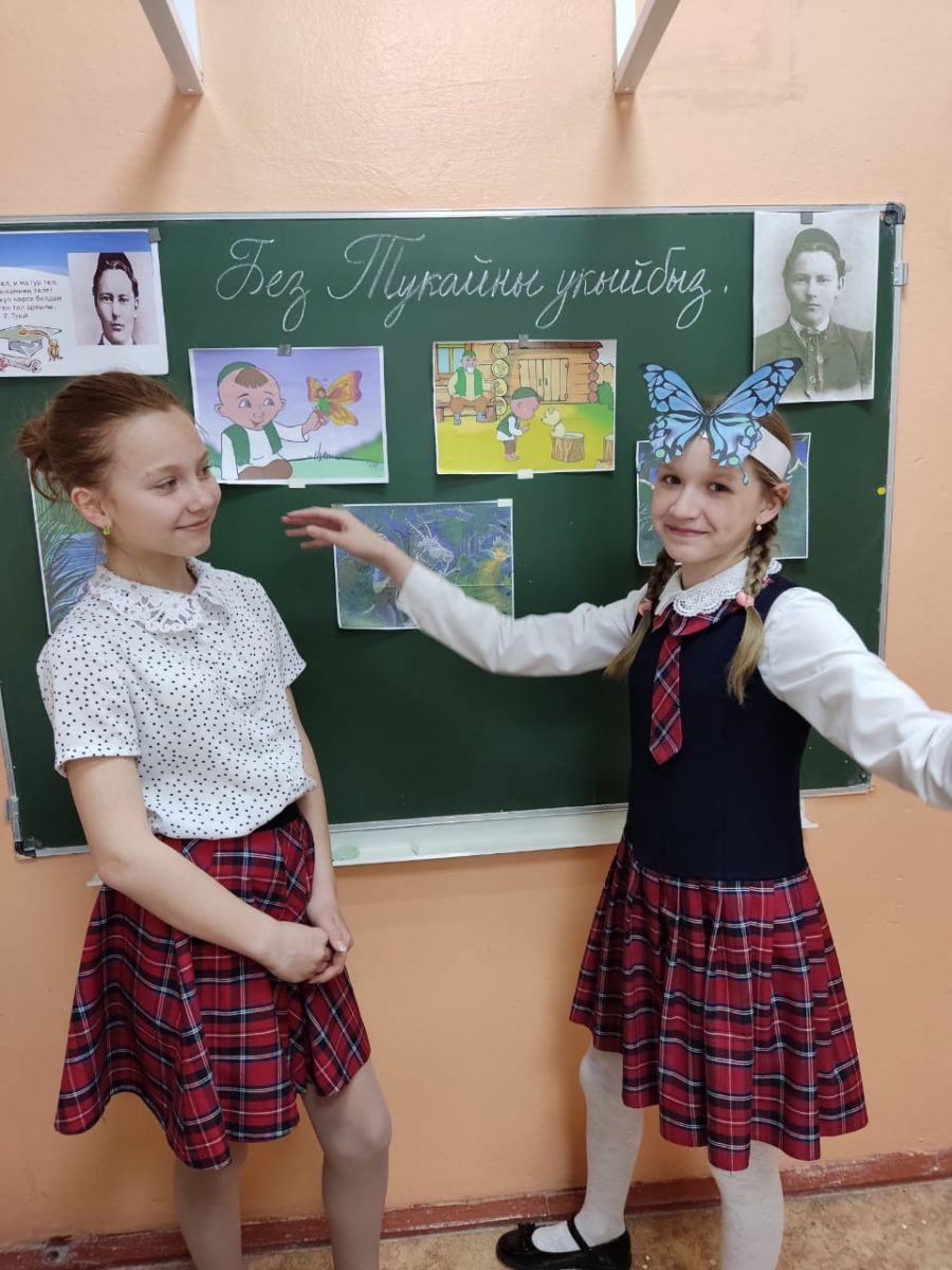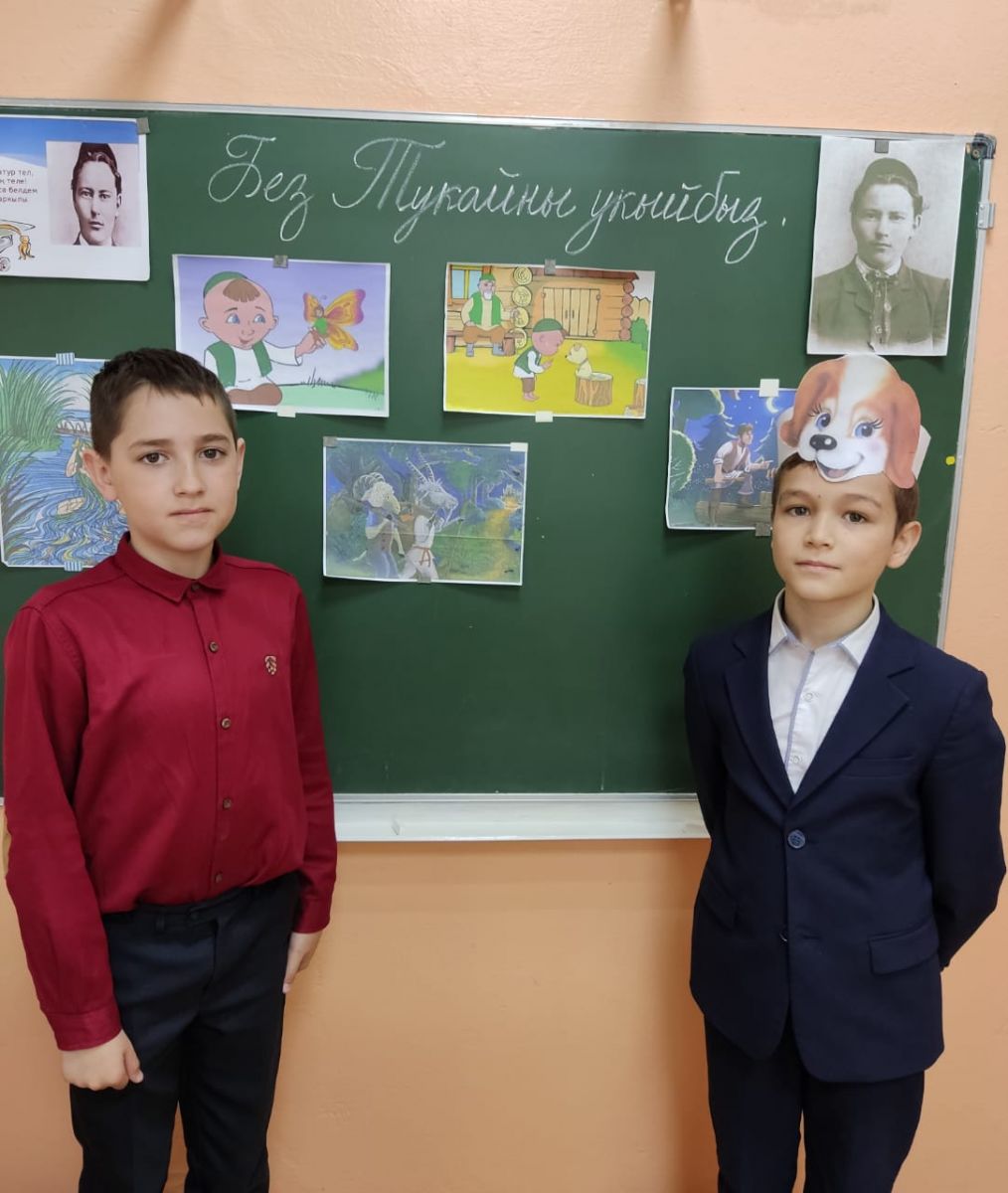 Бүген бездә кунакта Г. Тукай исемендәге Үзәк китапханәнең милли-туган якны өйрәнү бүлеге хезмәткәрләре. Алар 4 нче сыйныф укучылары өчен бөек татар шагыйре Г. Тукайның тууына 136 ел тулуга багышланган, «Тукай безнең йөрәкләрдә» дип исемләнгән әдәби чара уздырдылар.