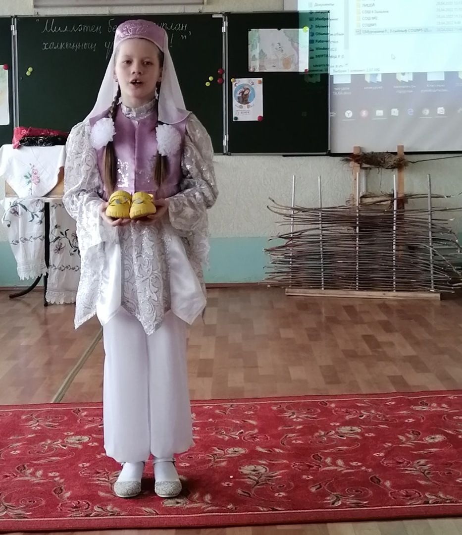 28 апреля, в рамках дня рождения великого татарского поэта Г.Тукая, в 4 школе нашего города прошел конкурс – “Милләтең белән горурлан, халкыңның үзе белән!”. Честь нашей школы защищала ученица 3В класса Мавлютова Раяна Рустамовна (руководитель Шаймухамедова Р.Р.) и она завоевала 2 место.