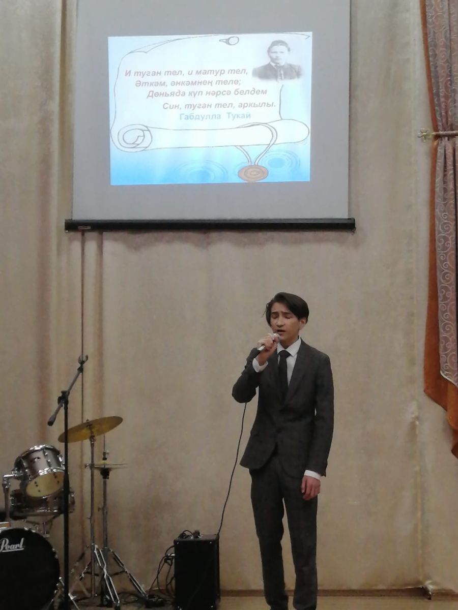 Габдулла Тукай дөньяда бары тик 27 ел гына яшәгән. Шулай булса да, ул гаять зур рухи байлыгын калдырган. Без аңа багышланган кичә үткәрдек. Кичәдә 1нче сыйныфтан алып 11 нче сыйныфлар катнашты. Укучыларыбыз сөекле язучыбыз турында белемнәрен күрсәттеләр, шигырьләрен дә сөйләделәр, җырларын җырладылар. Кичәбез “Туган тел” җыры белән тәмамланды.Родной язык - святой язык,