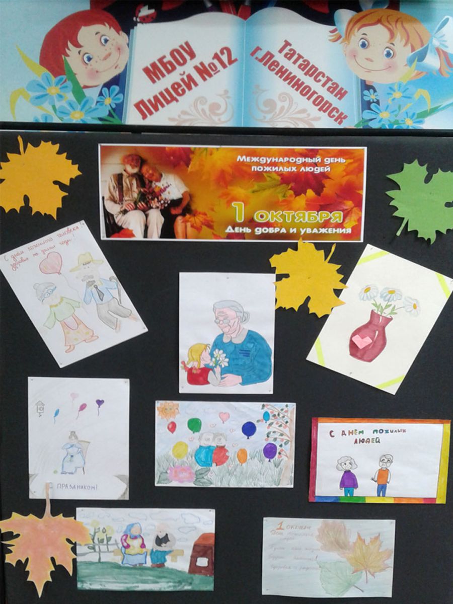 В День пожилого человека ученики младших классов разместили на дверях подъездов и магазинов поздравительные плакаты, сделанные своими руками. Так учащиеся выражают свою благодарность и уважение людям старшего поколения.