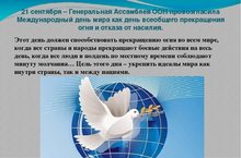 21 сентября– Международный день мира (с 2002) 20.09.2023