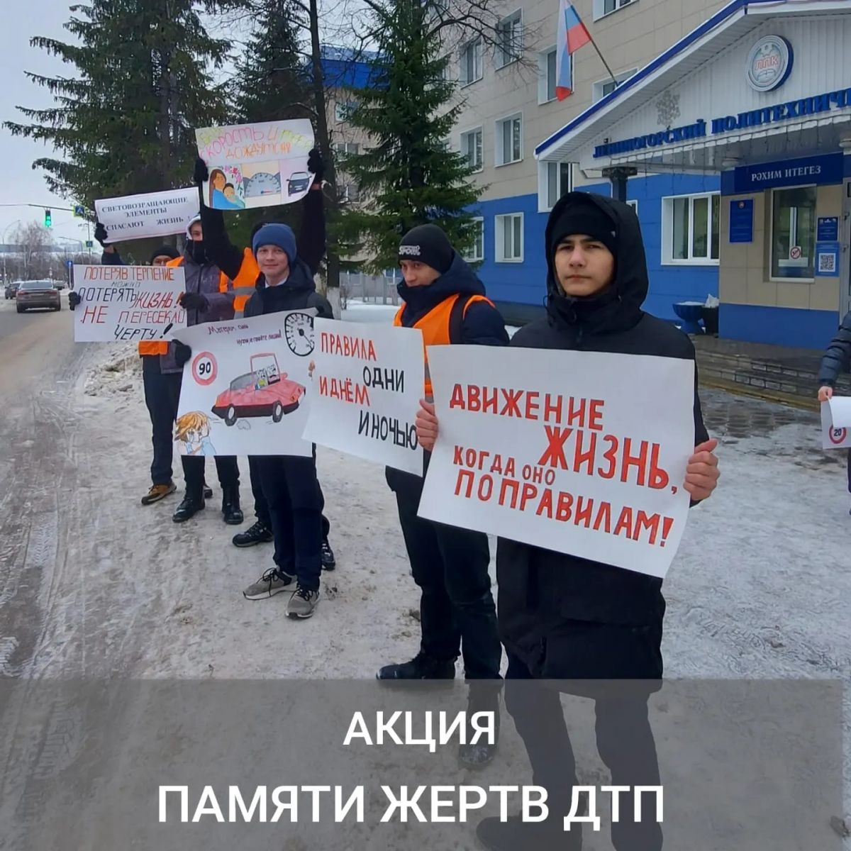 Студенты группы ТОР.22 совместо с отделом БДД провели акцию к Всемирному дню памяти жертв ДТП. Это международное событие призвано привлечь внимание всех людей планеты к печальному факту: во всем мире в результате дорожно-транспортных происшествий ежедневно погибает более трех тысяч человек и около 100 тысяч получают серьезные травмы. Большая часть из погибших и пострадавших — молодежь.